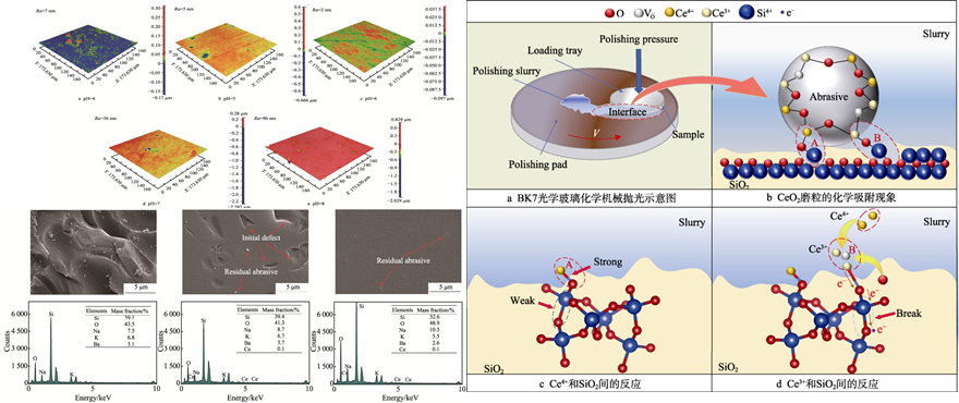 尹新城在《表面技术》(中文领军期刊)发表题为“BK7光学玻璃化学机械抛光机理研究”的论文。该研究旨在探究BK7光学玻璃在化学机械抛光过程中,相关因素对BK7光学玻璃抛光表面的材料去除率、粗糙度的影响规律,揭示BK7光学玻璃在二氧化铈抛光液中的化学机械抛光机理,获得高效、低损伤的表面抛光质量。