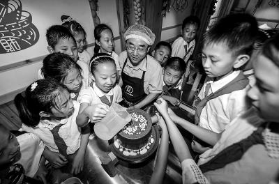 昨天,首都师范大学附属小学柳明校区124名小学生走进北京市腐乳科普馆,磨豆制浆、点浆压榨、360度全息影像前看腐乳制作,了解老字号非遗文化。