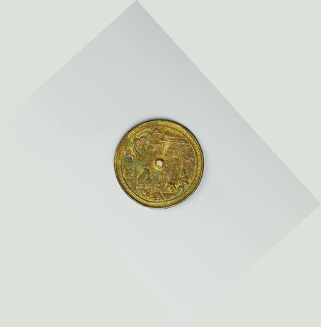 许由和巢父的故事流传广泛。作为中国历史上着名隐士,许由以自身的才华和远离喧嚣的隐居生活方式,赢得了当时人们的尊敬。而巢父的境界,比许由还要高一筹,因而,更受到了后代儒生雅士的推崇。许由洗耳、巢父饮牛在古代诗文中也多用为隐居不仕的典故。而我们看到的这面人物故事镜中描绘的场景,则是对这个典故内容的精炼“图解”。许由巢父故事镜流行于北宋晚期,辽、金、元时代。各朝代构图在母本的基础上形制稍有不同,这面铜镜从其形制及做工判断应是元代的。
