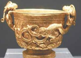 贵州省博物馆新馆中,有一组宋代金银器,做工精美,金光璀璨,吸引了众多观众驻足观看。这组金银器2014年出土于遵义新蒲播州杨价墓,该墓是已科学发掘的杨氏墓葬中唯一未被盗扰的,墓中出土精美金银器80余件,为深入认识宋代金银器制作工艺等情况提供了重要材料。在这些金银器中,最为精美的是一件螭首金杯和一件螭纹金盘。