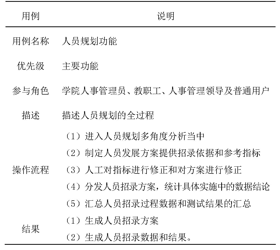 本文分析了当前人事管理系统在各个行业中的应用现状。然后以某院校为例,在深入调研其用户需求的前提下给出了人事系统人员规划管理应该具有的功能,并以UML用例图的方式进行了需求描述。
