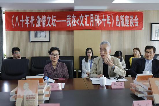 作者罗达成为大家解释了书名的含义:“‘激情文坛’有两层意思:一个是文坛真正充满激情;一个是我们这代人也充满激情地活跃在这个文坛里。”他说,正是写作这部书稿的七年时间里,自己身体里的一个囊肿发展成了肿瘤。“我的家里人坚决反对我再这么做下去。但现在反正也熬过来了。”
