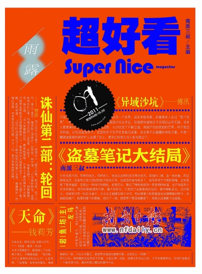 继郭敬明、韩寒、安妮宝贝之后,又一本由畅销书作家主编的杂志即将创刊《盗墓笔记》的作者,被称为“中国最会讲故事的小说家”南派三叔创办的《超好看》杂志,首印50万册,将于8月1日全国统一上市。《超好看》在媒体上征稿打出了“千字千元”的天价。结果3个月内,到稿量超过了20000篇。南派三叔表示,创刊号的大部分中短篇小说都是从投稿中选出的,质量非常高,在高稿酬的刺激下,很多小说高手这次都出山了。