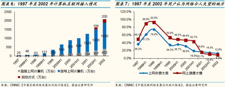PC时代早期,互联网普及率较低,可供浏览的内容也不够。1997-1999年,我国互联网普及率不到1%,上网是可望不可即的奢侈品。1999年,全国网民数量仅为890万人。2000-2002年,网民规模进入扩张期,互联网普及率于2002年达到4.6%,但是仍然谈不上主流。从内容供给端来看,网站数从2000年开始有显跃升,直至2002年有37.16万个。然而,37万个网站,仍然不足以满足几千万网民的内容需求;何况,在这些网站当中,一大部分还是缺乏持续内容更新的个人网站。