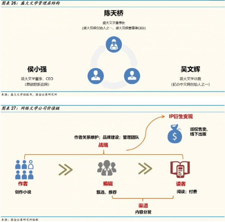 盛大网络收购起点中文网,开启集团化、资本化进程。2004年10月,盛大网络全资收购起点中文网。依靠盛大的资源优势,起点从服务器资源到线上支付渠道都有了明显改善提升。盛大游戏卡充值加入起点充值体系,再加上网络银行的支付渠道,很大程度上提高了支付的便利性。2008年,盛大文学正式成立,通过收购,完成了由多家原创网络文学网站、线下出版社等10家主要公司组成的资产结构。其旗下主要有起点中文网、晋江原创网和红袖添香文学网三个代表性文学网站。2011年5月25日,盛大文学申请在纽交所IPO,最高融资2亿美元,但上市未果。