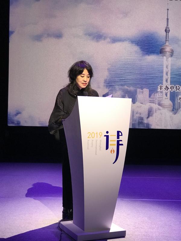 上海作协副主席、诗人赵丽宏宣读了授奖词:翟永明以她卓然独立、自由不羁的创作,为中国新诗开创了一片令人惊叹的奇妙风景。数十年来,她从未停止自己的追求和创造,始终置身于当代最具标志性的诗人行列。她以女性独特的眼光和思考,不断追问、求变、创新。她是女性立场智慧坚定的言说者,也是命运感受灵光四射的描述者。她以真诚的态度逼视当代的生存状况,透显出博大的悲悯情怀。她丰富多样的诗作展示出无与伦比的语言魅力,为汉语的当代写作提供了优美深刻的范本。本届“金玉兰”奖评委会一致认为,第四届上海国际诗歌节将“金玉兰”诗歌大奖奖杯授予翟永明。