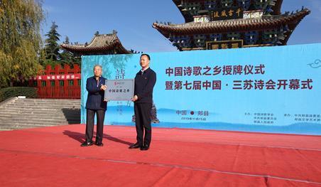 程步涛致辞,并向郏县人民政府授牌“中国诗歌之乡”。