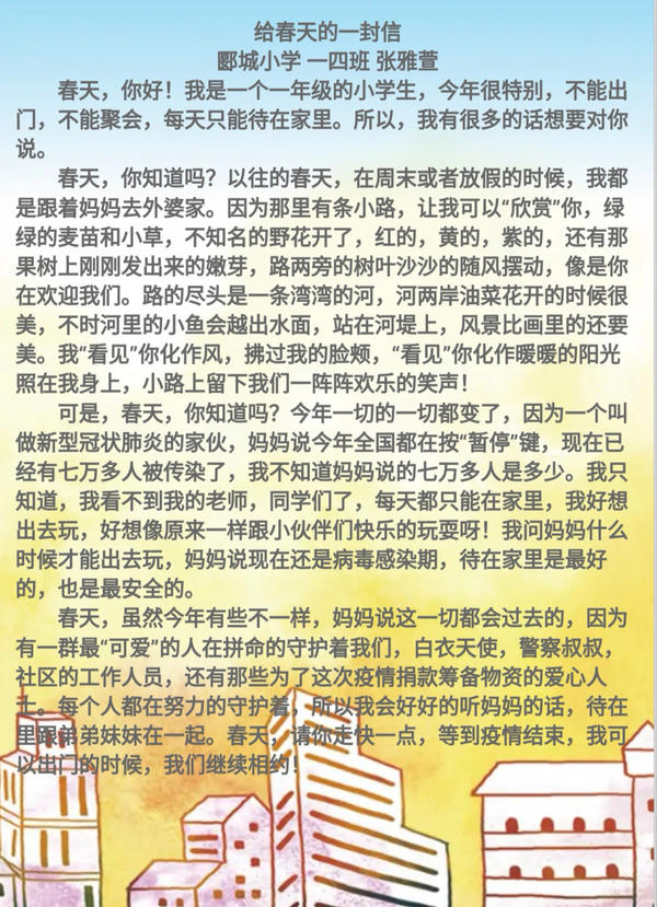 基本介绍:“盼——郾城小学抗疫情主题征文评比”优秀作文选。