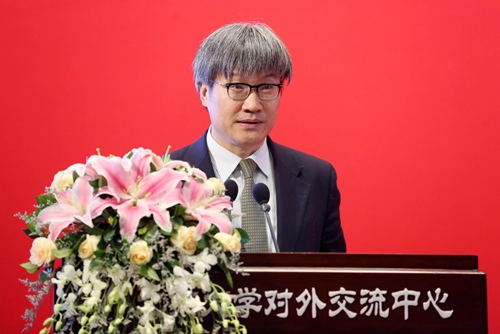 颁奖典礼上,王博首先代表学校致欢迎辞。王博指出,文学是以理想的方式思考生活,文学家则以思考的方式整理世界。站在120周年校庆的今天,我们更需要反思,只有反思才能更好地面向未来。