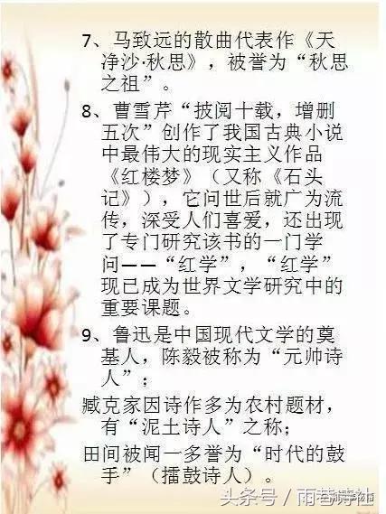 中华文学常识汇总!家有读书郎宝贝的还不孩子收藏、打印起来?