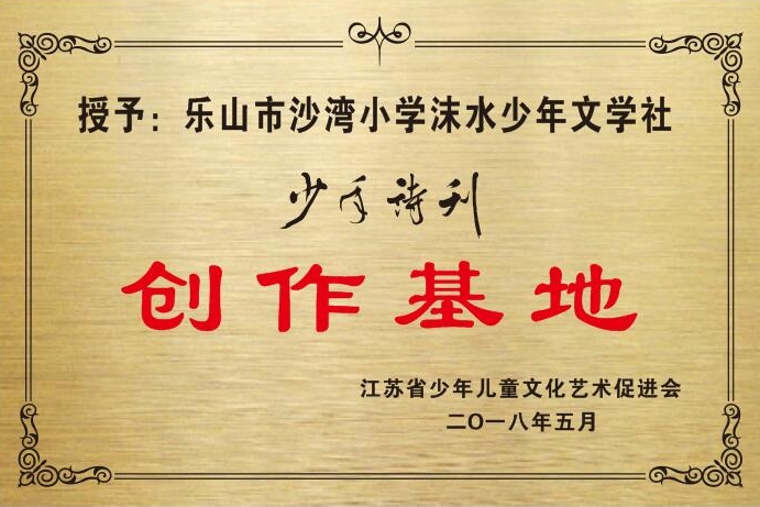 5月16日,四川省乐山市沙湾小学“沫水少年文学社”收到牌匾,该社被江苏省少年儿童文化艺术促进会授予《少年诗刊》“全国第一家”创作基地。