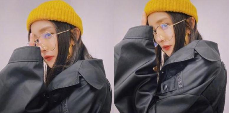 杨幂绿洲营业晒美照 小黄帽搭黑皮衣潮范十足