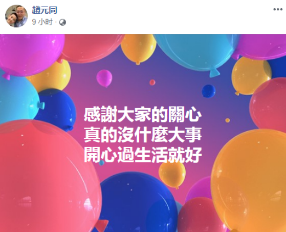 此事引起热议,15日晚,赵元同在离婚消息传开后,还更新了个人社交账号表示“我今晚要跑50公里”,疑似以运动纾解压力,网友纷纷表示要陪跑。可能怕亲友担心,他晚上近11点又更新表示“感谢大家的关心,真的没什么大事,开心过生活就好”。