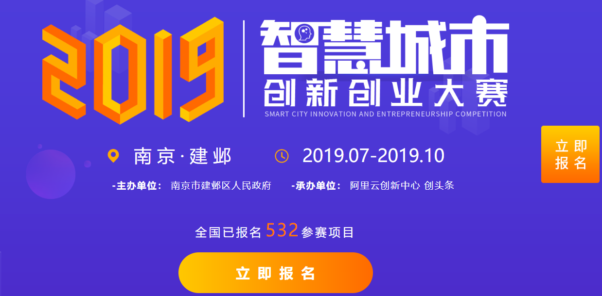 2019中国智慧城市创新创业大赛由南京建邺区人民政府主办,阿里云创新中心与创头条承办。主要聚焦智能+新金融、智能+新服务、智能+教育、智能+大健康、智能+新出行、AI消费产品等与智慧城市、产业融合相关的创新解决方案和项目。