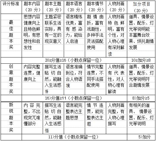 3.第三轮评选:通过评委评分,对前 19 名的作品进行评分,按分数由高到低分别为最佳剧本奖一名、创意剧本奖三名、新锐剧本奖六名及入围奖九名。