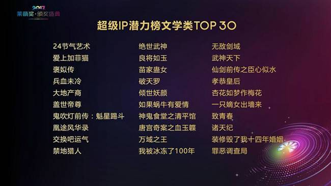 》《诸天纪》荣登2017莱萌奖-超级IP潜力榜。