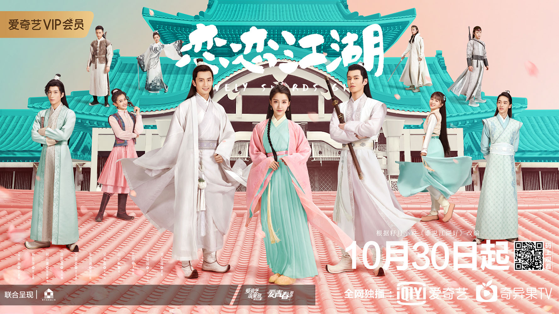 由李梅执导,刘天池担任艺术总监,姜贞羽、杨仕泽、吴芊盈、何宜谦、徐凯鑫、李嘉豪、张雪菡等联袂出演的古装武侠爱情喜剧《恋恋江湖》,将于10月30日起在爱奇艺正式开播。