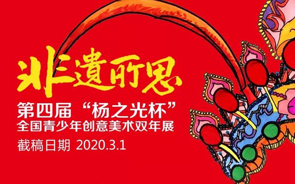 由广东省美术家协会少儿美术艺术委员会、广东省杨之光艺术教育基金会联合主办的“第四届‘杨之光杯’全国青少年创意美术双年展”将于明年4月在广州美术学院美术馆举行,本届大展主题为“非遗所思”,现正于全国范围公开征稿。据了解,大展活动评选分三个年龄组进行,3~18岁孩子们均可来挑战!
