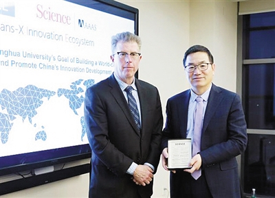 清华控股有限公司副总裁李中祥(右)与《科学》系列