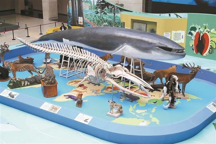 展览内容丰富多彩,主题鲜明,不仅涵盖天文、地质、生物和人文等传统学科知识,还涉及生命、制药、通讯等现代前沿科技。在梦幻炫酷的星空屋,观众可以看到世界上最大规模的巡天项目“斯隆数字巡天项目”盘子,感受浩瀚星海。置身“草木物语”展场,犹如打开大自然的百宝箱,观众可以亲手触摸2亿年前的南洋杉型硅化木,观察生动形象的捕蝇草,看看穿越5000万年时空的大型棕榈叶化石和现在的棕榈叶标本有什么不同。在“百兽物语”,观众可以近距离目睹地球第二大现生动物长须鲸,草原霸主和百兽之王异种杂交的后代狮虎兽,国际贸易三大禁品盔犀鸟头骨、犀牛角和象牙。在“瑰石物语”,观众可以看到绚丽的矿物单晶体,了解矿石矿物中的各种有用元素,学习矿石怎样用于精细的机械仪器制作中。