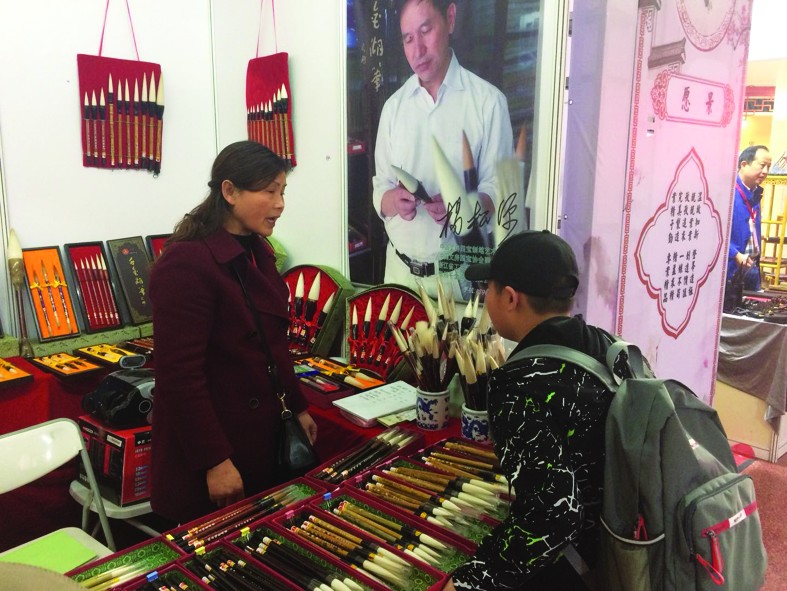 据某展商介绍,不同材质的毛笔,适合不同阶段的人使用。“刚入门的中小学生,最好买材质较为硬朗的狼毫,有了一定书法绘画基础,可以尝试鸡豪笔等材质较为柔软的毛笔。”