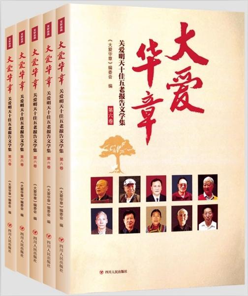 这些年来,四川省7.7万个关工委组织中的120多万五老志愿者,满怀对党和人民事业的无限忠诚,积极投身新时代,热情奉献新时代,升华了“忠诚敬业、关爱后代、务实创新、无私奉献”的精神境界。从2013年至今,四川省关工委联合省级有关单位,连年举办四川关爱明天“十佳五老”评选活动。在《大爱华章》(第六卷)中,十位作家对五老进行“一对一”采访创作,用群众语言、朴实文风讲述了这些平凡英雄的故事。这其中,有老专家赵家骥育人重育心,把深奥科学讲得“有益更有趣”的探寻;有老干部陈德熙带领青年创业,做到“帮一把扶一程”的执着;有老干部雷允树多一份坚守,为困境儿童多燃一份希望的力量;有同样作为老干部的梁绍华初心永不改,老有所为挑大梁的干劲;有李顺模这样的老干部铸魂心未老,关爱路上亮品牌的创举;有从部队退伍的老战士叶树元助学最倾情,“侠客”无悔进深山的传奇;有老模范昂堂把根扎高原,心唯大我育青禾的夙愿;有同样作为老模范的陆学英当矿山母亲,深沉无私献母爱的感动;有杨虎这样的老模范以炽热红心,让红色基因代代传的践行;更有老教师章瑞宽大爱伴童行,尽洒余晖映朝阳的情怀……
