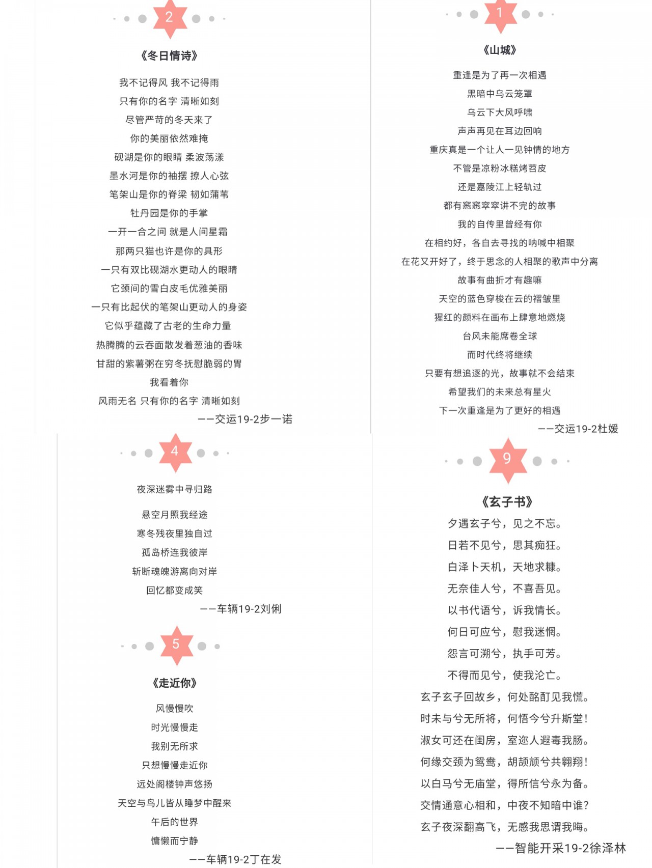 大赛期间,来自各个学院的选手们积极参加,涌现出诸多优秀的散文诗歌作品。其中,杜媛的作品《山城》以动人的笔触讲述了以重庆为背景的相遇与重逢,字里行间充斥着作者对故友重逢的憧憬以及对未来生活的美好向往,引人深思,耐人寻味;步一诺的一首《冬日情诗》采用了虚实相间的手法,将柔波荡漾的砚湖、韧如蒲苇的笔架山等校园景物拟人化,彰显着作者对科大真挚而又浓郁的热爱;张智超的《国家危难时,青春勇担当》饱含对战“疫”前线战士的钦佩,感人至深……选手们站在不同角度,以隽永的文字纷纷表达着内心的情感,阐述着自己对“美”的理解。