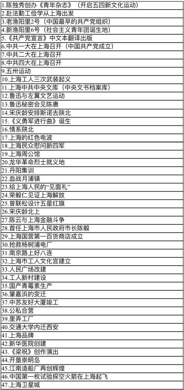 附:“日出东方——上海市庆祝建党百年青年美术创作项目”推荐选题