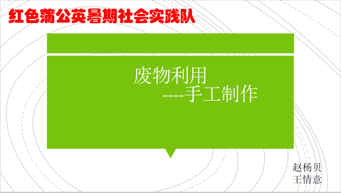 第一节课由志愿者赵杨贝和王情意同学一起开展废物利用----手工制作直播课,小朋友们都跟这直播做起了手工,首先志愿者们介绍了废物利用是指收集本来要废弃的材料,分解再制成新产品,或者是收集用过的产品,清洁、处理之后再出售。回收再利用的支持者认为这么作可以减少垃圾的制造以及原料的消耗。一般回收的材料包括玻璃、纸、铝、柏油、钢铁、打印机、碳粉匣、墨水匣。这些材料的来源可以分为事业废弃物与一般废弃物。 为了实现废物资源化,许多国家采取了一系列鼓励利用废物的政策和措施,如建立专业化的废物交换和回收机构,从事废物的直接有效应用。