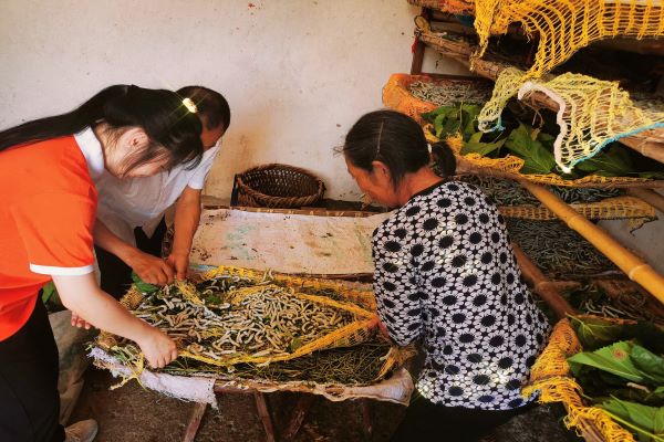 图三:张爷爷夫妇给志愿者讲解养蚕事项