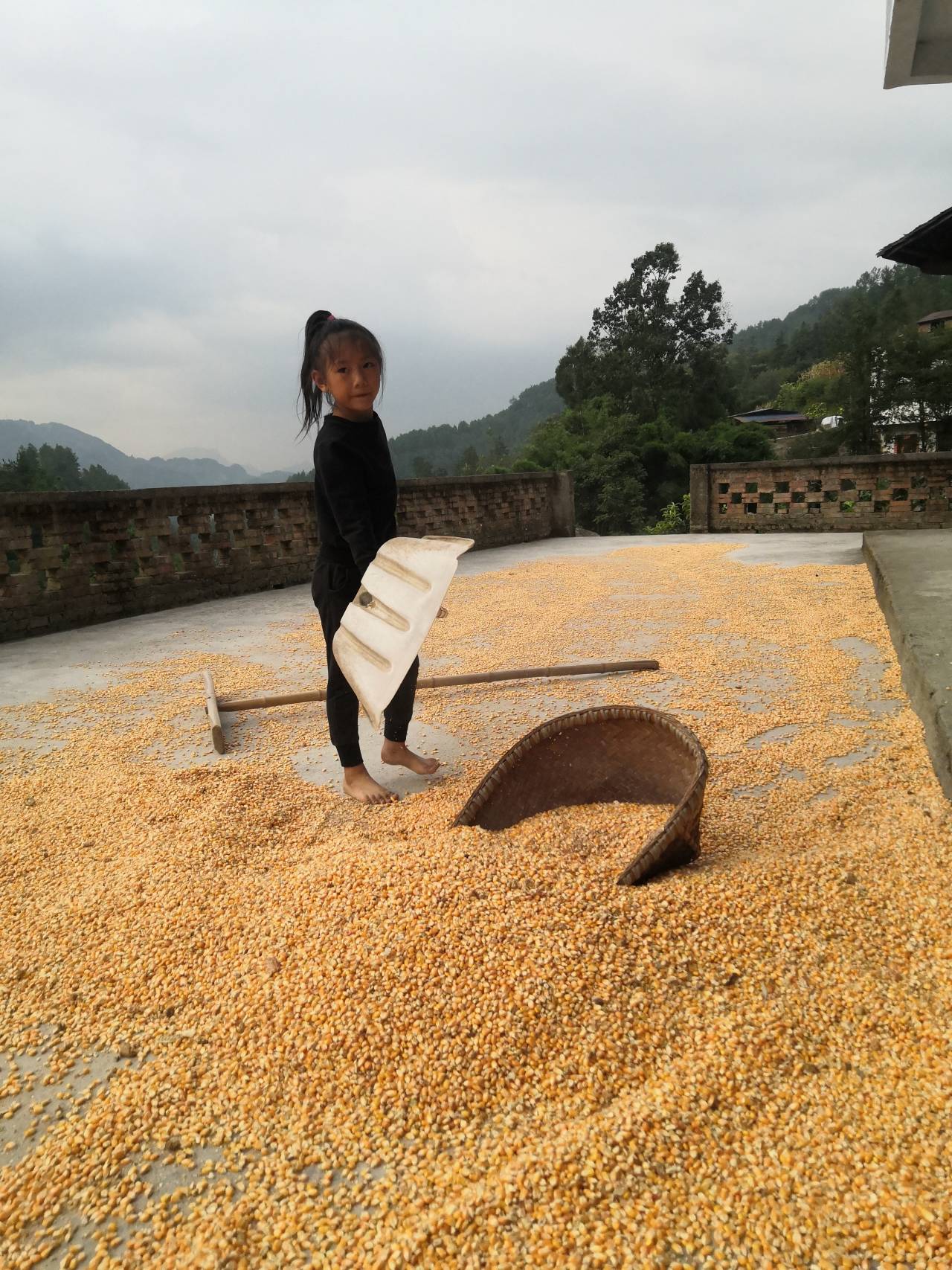 图一:小妹妹晒玉米