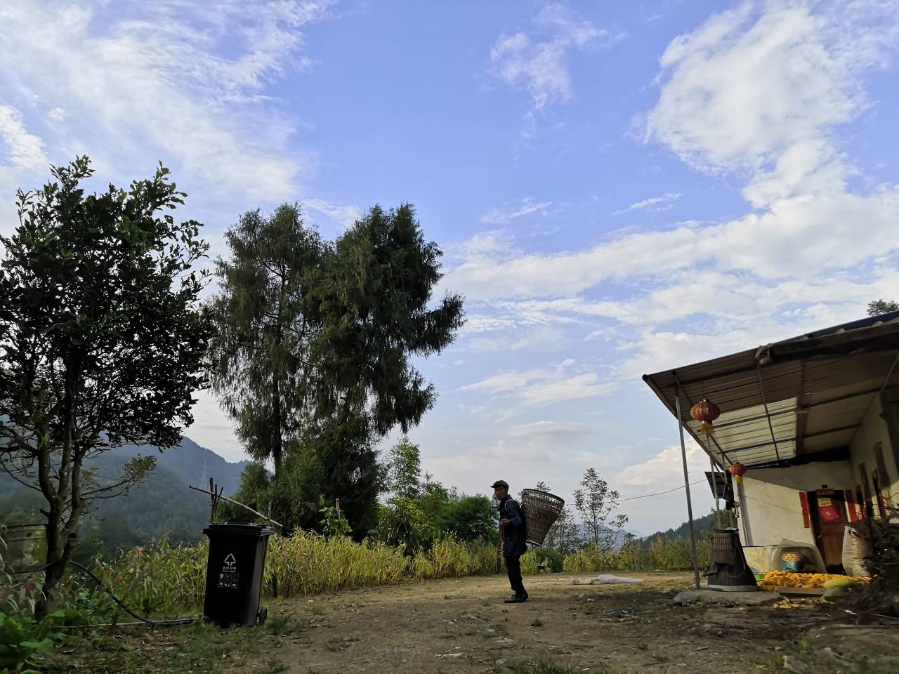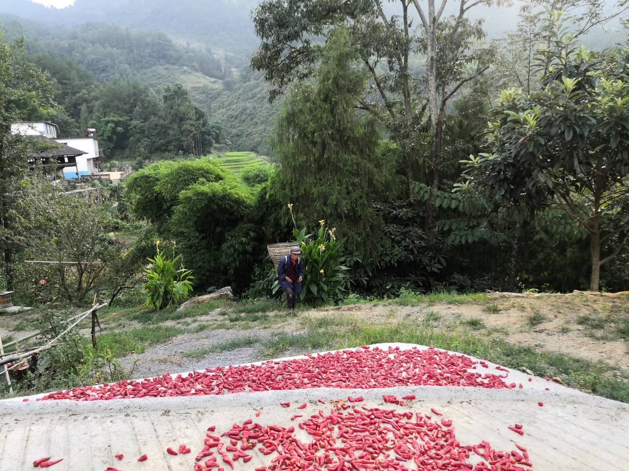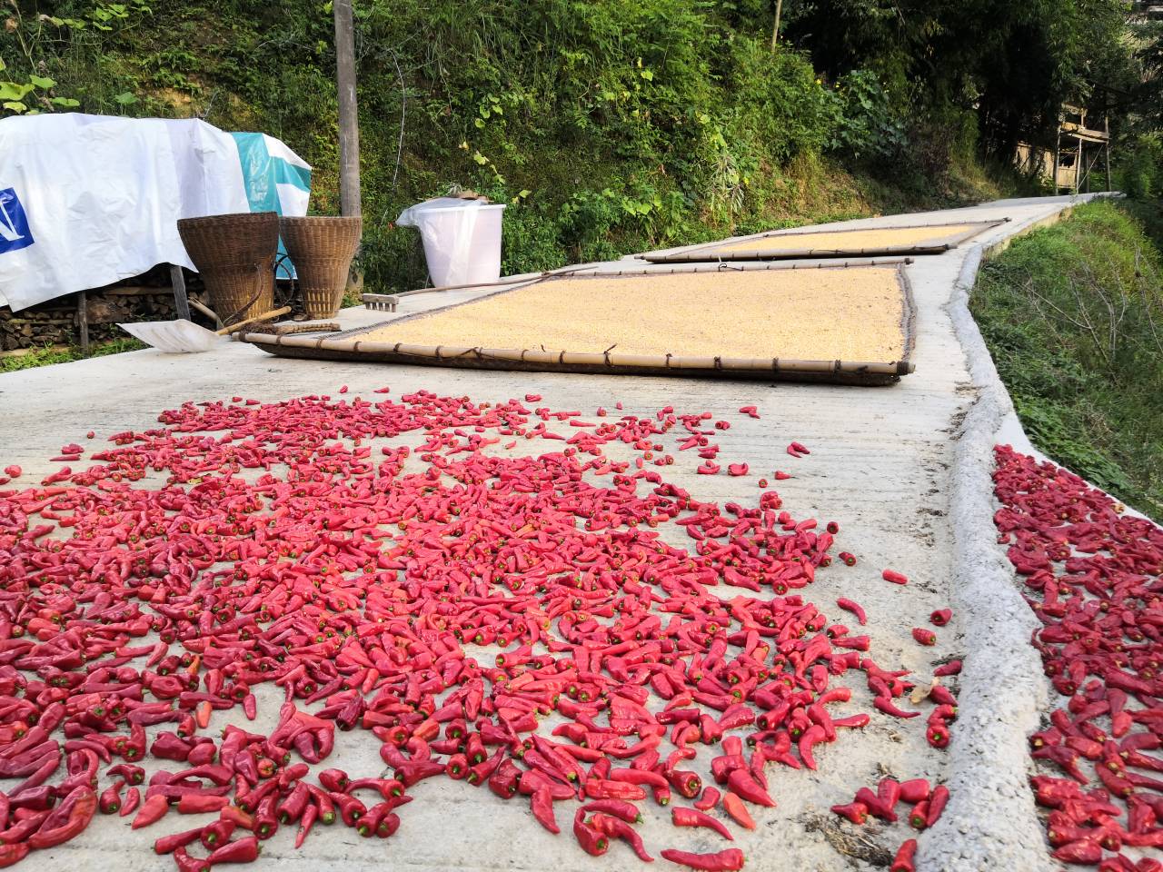 晴天的午后,一切都显得那么慵懒,微风吹拂过来,夹杂着的是瓜果清香。我在路上遇到了一位背着背篓的老爷爷,背篓里装满了辣椒。有了上午踏出采访第一步的勇气,这一次我不假思索地上前询问这位老爷爷,他笑着对我说,今年好啊,粮食够吃,还是咱国家政策好啊,咱老百姓也越来越好啊,这一年到头就盼着粮食丰收。说完后又大笑起来,每条皱纹里都洋溢着笑意。