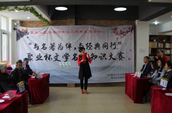 为迎接“世界读书日”的到来,深入推进书香社区建设,让居民在读书中开拓视野,读出人生风景线,读出生活新感悟,4月20日上午,聚业社区图书馆在开馆三周年之际举行了“与名著为伴 与经典同行”系列活动。