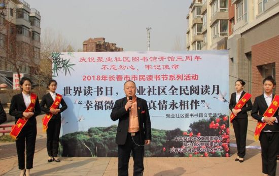 9点,活动正式开始,本次活动分为图书义卖、旧书互换和文学知识大赛三个部分。活动受到了长春市图书馆和玉潭镇政府的大力支持,长春市图书馆为聚业社区捐书1409册,阚立民主任和丁文武同志来到了活动现场。