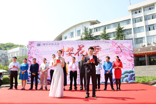 为加强当代大学生的艺术素质教育,提高文化素养,营造良好的校园文艺氛围,4月19日下午,湖北师范大学在樱花路上举行了“樱花季”传统文化嘉年华暨樱花诗词节、民俗文化节开幕式。市文联、作协负责人,湖北师范大学副校长雷儒金以及宣传部、学工部、团委、语委办、体育学院、文学院、音乐学院、美术学院分管学生工作负责人,学生代表参加了开幕式活动。