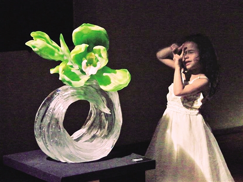 此次杨惠姗带来的“一朵中国琉璃花”系列作品中《且舞春风共从容》,系中国美术馆收藏的同款作品。2013年,作为收藏、研究、展示中国近现代艺术家作品的“最高殿堂”,中国美术馆收藏杨惠姗、张毅各一件作品,这是中国美术馆第一次收藏琉璃艺术。《且舞春风共从容》以花中君子春兰歌咏德者的高洁、清雅,硕大的花朵盛极绽放,展现对生命的歌颂,为这个世代、这片土地,开出一朵属于民族的琉璃花。艺术家这样的向往,再一次突破了琉璃雕塑和色彩的束缚。张毅则带来了名为“一抹红”的系列作品,该作品以玻璃铸造为媒介,融会中国传统绘画技法,表现宋代山水的水墨层次、晕染,让诗情画意流动,让宋代的审美趣味在琉璃的语汇里流动。