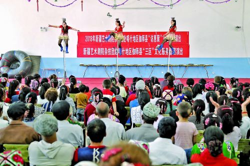 本报伽师4月29日讯记者王欢、谢龙报道:29日,伽师县江巴孜乡尤库日尕勒村礼堂里笑声掌声不断。新疆艺术剧院杂技团2018年“访惠聚”文化惠民演出小分队为当地500多名村民送上精彩演出。