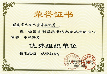 近日,省水文局被中国水利职工思想政治工作研究会和中国水利文学艺术协会联合授予“全国水利系统书法家走基层送文化活动优秀组织单位”荣誉称号。该局积极响应水利部和省水利厅的工作部署,通过“我们的节日·春节”—写春联送祝福活动、向援建单位昌吉水文局赠送书法作品、打造机关和测站廉政书画文化长廊、举办家风家训廉政教育书法讲座等方式,组织开展了贴近干部职工生活、群众喜闻乐见的走基层送文化系列活动,为水利战线广大干部职工送去了党的温暖、上级的关怀和精品文化的审美享受,进一步丰富了广大干部职工的精神生活。