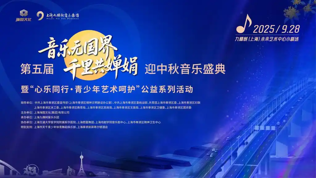 9月28日,一场跨界融合的音乐盛宴——第五届“音乐无国界·千里共婵娟”迎中秋音乐盛典暨“心乐同行·青少年艺术呵护”公益音乐会,将在九棵树(上海)未来艺术中心实验剧场奏响。本届公益音乐会由上海海国文化(集团)有限公司主办,国际指挥大师、乐团艺术总监汤沐海偕上海九棵树爱乐乐团中外音乐家和社会各界艺术家共同呈现。在延续了往届的国际视野、艺术性特点与“迎中秋”的传统主题基础上,本届音乐会进一步强化了社会公益性,特别聚焦青少年健康成长领域。将以音符为纽带,跨越地域与文化的边界,融汇传统与现代、民族与西洋,共同演绎一场关于和谐与共融的深情对话。
