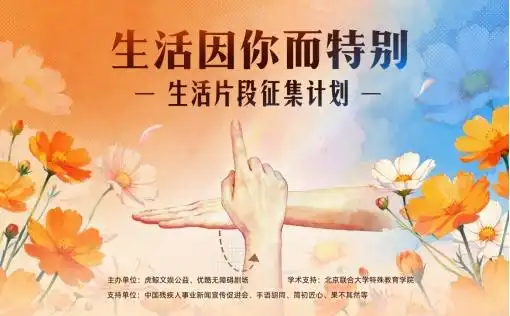 9月28日是第68个国际聋人日,虎鲸文娱公益、优酷无障碍剧场联合中国残疾人事业新闻宣传促进会、北京联合大学特殊教育学院、手语胡同、简初匠心、果不其然等多个公益合作伙伴,发起“生活因你而特别”生活片段征集计划,希望邀请更多聋人/听障群体拍摄短视频,传递乐观、自信、多元、包容的生活态度,让世界看见无声的精彩。