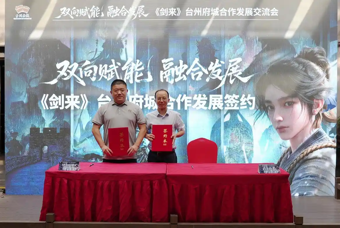 为推动网络文学与地方文旅深度融合、双向赋能,探索文化“新三样”引领下的文旅发展新路径,剑来文化创意工作室、浙江文艺出版社、台州府城文化旅游发展有限公司三方携手合作,共同致力于《剑来》IP的融合发展,助推《剑来》成为“文化新三样”的经典案例,打造“网文IP《剑来》+地方文旅+出版+文创”的创新样板,扩大《剑来》在全国乃至全球范围内形成更强更好的文化辐射力和影响力。