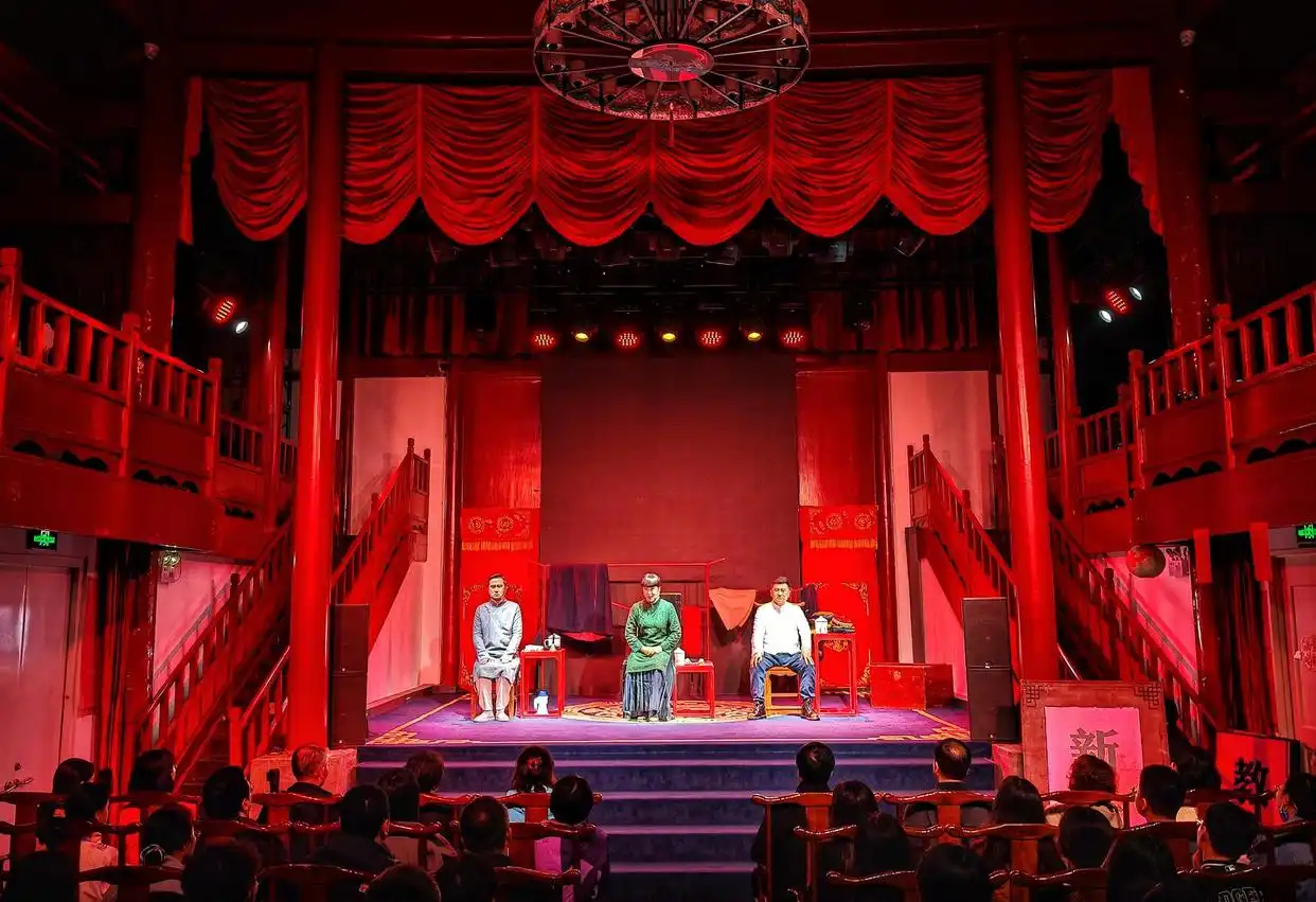 2025“故宫以东”古建艺术季系列活动正在陆续举办中,10月11日晚,舞台广播剧《三昧》作为“古建汇演”系列的重点剧目在颜料会馆上演。这部沉淀十年匠心的作品首次在古会馆中亮相,在百年晋商会馆的古雅空间里,为观众串联起跨越八十年的北京记忆。