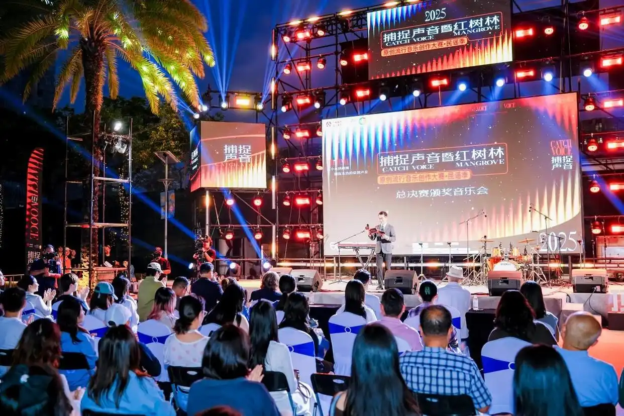 10月25日,CATCH VOICE捕捉声音暨红树林(Mangrove)原创流行音乐创作大赛——民谣季总决赛颁奖音乐会,在深圳福田城市新地标“中轴云廊·顶上空间”举行。历经数月全球征稿与激烈复赛,十强选手从830首作品中脱颖而出,齐聚鹏城,展开终极对决。