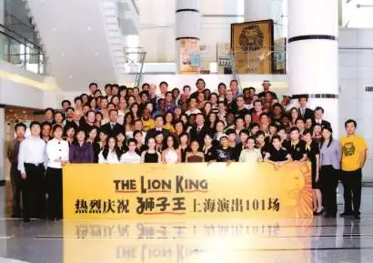 很巧的是,两个月之后,我到香港开会,居然被安排下榻在他们的迪士尼酒店。唐先生和助手特地赶来酒店找我,对我说:“好消息!总公司同意以迪士尼的名义,冠名赞助这次音乐剧演出。这样一来,迪士尼总公司会支付你们80万美金的冠名赞助费,也就是说,你们只要付给迪士尼公司20万美金的版税就可以了。”我一算,100场演出支付版税,相当于一场演出只要支付1.6万元人民币的版税,这对我们来说真可谓“雪中送炭”啊!就这样,经过差不多8个月的艰苦谈判,2006年春节后,我们与迪士尼戏剧公司终于达成演出协议,中国也成为了除英美澳之外,第四个演出英文原版音乐剧《狮子王》的国家,这部魅力四射、精妙绝伦的音乐剧首次在中国上海与亚洲观众见面。《狮子王》在上海大剧院原本计划上演100场,为了打破《剧院魅影》的纪录,又加演了一场,总共演出101场。