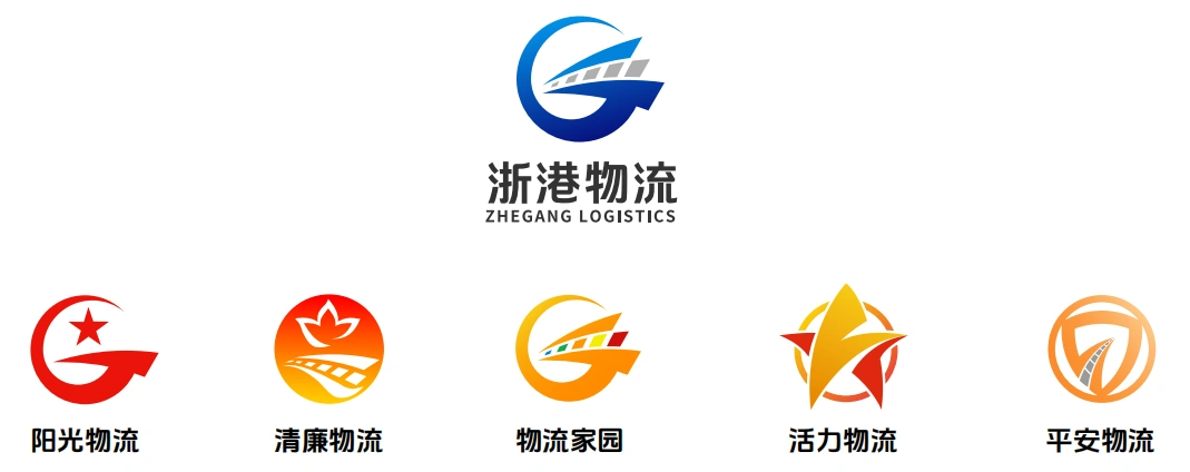 “浙港物流”LOGO设计赋予特殊寓意,巧妙融合“港”字中文首字母与“全球”英文首字母“G”,运用天蓝色与海湾蓝双色搭配,勾勒出海运、铁路、公路三种物流模式高效联动、链接全球的视觉意象。整体造型动感鲜明,呼应集装箱高效流转的现代物流节奏。