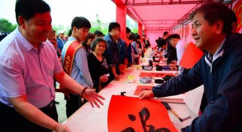 5月5日“艺术四季?春之熠——书写新时代书法文化惠民活动”在济南开幕,由山东省文联组织的20位知名书法家现场泼墨,将千余幅作品送给冒雨前来求字的济南市民。