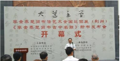 5月4日,“大道至简——李金泰楚简书法艺术全国巡回展(荆州)暨《李金泰楚简书古今名联》新书发布会”,在湖北荆州市图书馆举行,楚简书法家李金泰的100多幅楚简书法作品亮相。