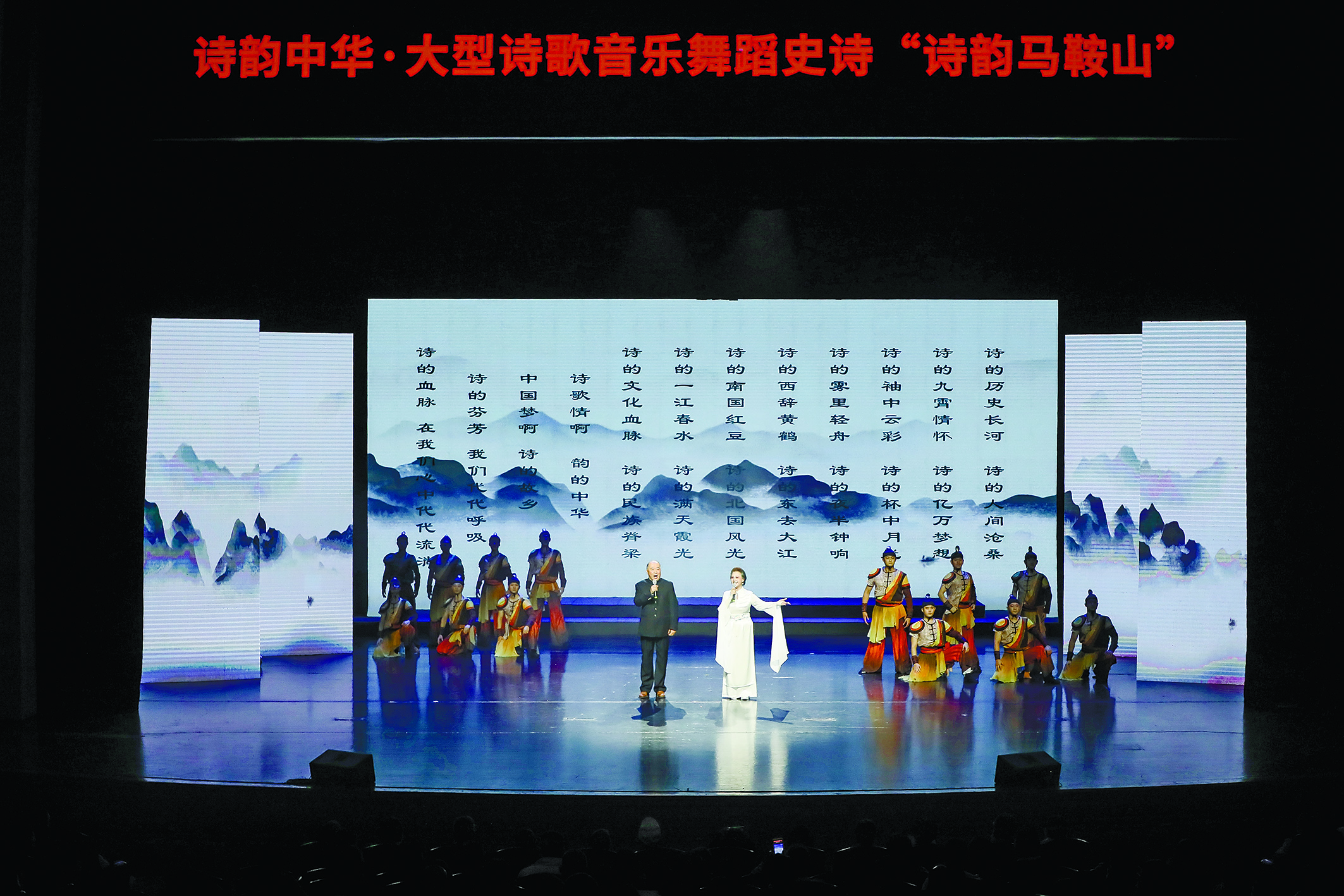 “天门中断楚江开,碧水东流至此回。”当舞台上清越的吟诵声响起,舞台下观众的跟读声悄然接续,这一刻,以诗为媒、心灵相和,成就了一场夜空下最动人的诗意相会。11月18日晚,“诗韵中华”大型诗歌音乐舞蹈史诗之“诗韵马鞍山”在马鞍山大剧院上演,为观众献上了一场唯美、时尚的诗词艺术视听盛宴。