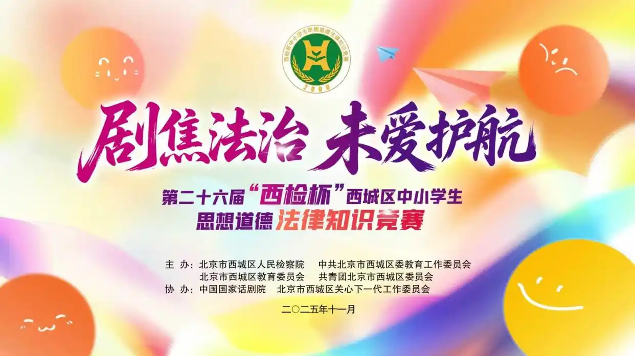 11月22日,第二十六届“西检杯”西城区中小学生思想道德法律知识竞赛决赛在西城区文化中心缤纷剧场举行。西城区8所中小学的学生们精心编排,将未成年人保护法、民法典、反电信诈骗、知识产权保护等宏大的法律主题,演绎成8个引人入胜的舞台剧,寓教于乐。