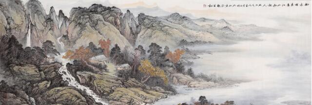 画家余静六尺横幅山水画作品《树木有春意 江山如故人》